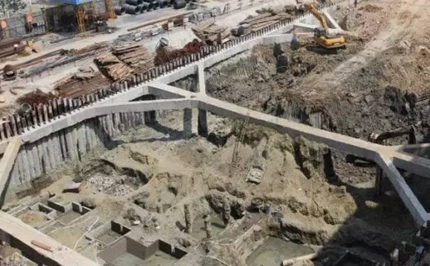 工艺说明:环撑施工,垫层与环撑之间应采取脱模措施,底模也可采取油毡或木模板等,环撑交叉节点等部位配筋复杂,需提前进行深化设计,采取爆破法拆除时需提前留置爆破孔,变形监测单位需与施工同步配合。