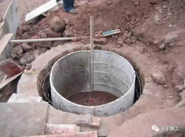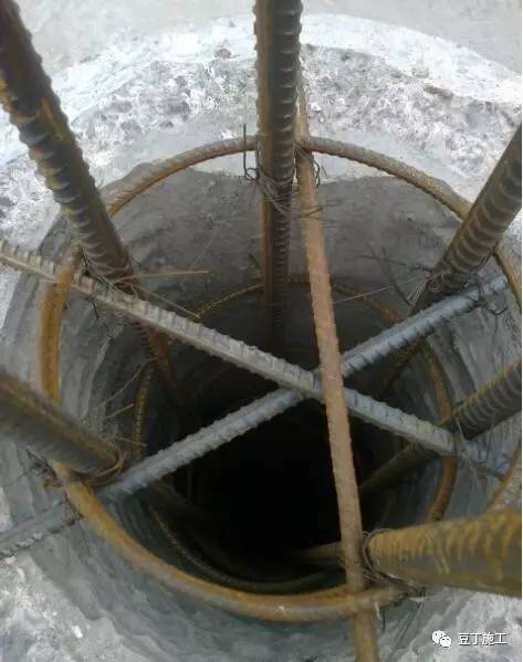 工艺说明:桩护壁模板应按每安装一节在桩口架十字用线坠复核、调校。