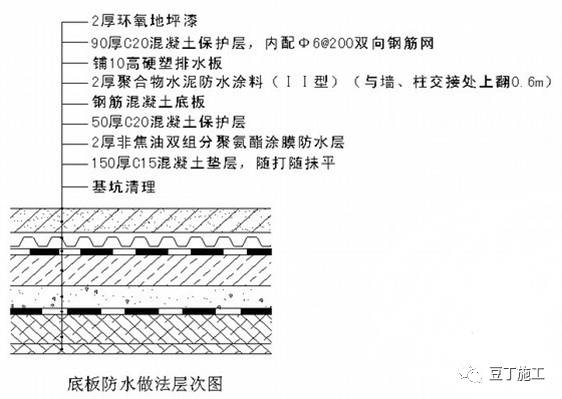 工艺说明:在底板结构板上增铺硬塑排水板,可有效起到防止底板渗漏的效果。