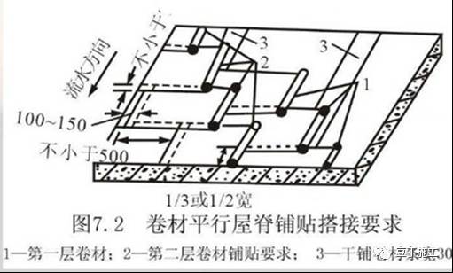 (6)外墙防水卷材搭接
