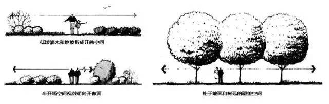 室外空间是由地平面、垂直面及顶平面单独或共同组合成的实际存在的或暗示性的范围围合。