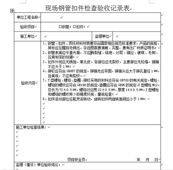2)对承重杆件、连接件的产品合格证、生产许可证和检测报告进行复核,并对表面观感、重量等物理指标进行抽检;