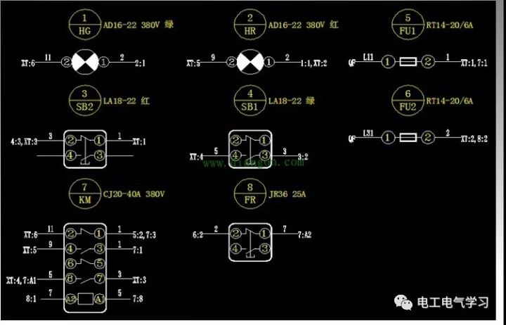 了解清楚每个元件的构造,即这个元件的常开/常闭触头数量,原理图里用到了几个。