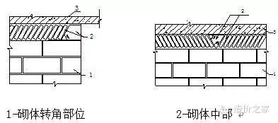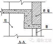 2.支承在悬臂梁和悬臂板上的墙体,应按图1.1a和图1.1b所示设置钢筋混凝土抗裂柱。