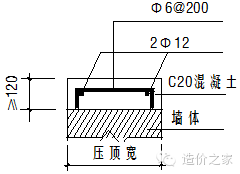 3.当外墙设置通长窗时,窗下应设钢筋混凝土压顶,压顶配筋见图1.2;压顶下应设置抗裂柱,间距不大于3m,抗裂柱内配不小于4ф12纵筋及ф6@200箍筋;压顶和抗裂柱纵筋搭接、锚固长度不小于500mm。拉结筋设置应符合抗震要求。