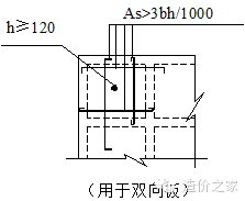 1.楼板厚度不宜小于100mm;当埋设线管较密、或线管交叉时,板厚不宜小于120mm。建筑外转角处的室内角部板块和井式楼盖的角部板块,其板厚不宜小于120mm(见图7.1a、7.1b)。建筑物平面刚度突变处的楼板宜适当加厚。