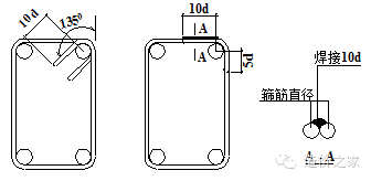 (1)框架梁、柱箍筋应按图9.2a制作;当梁、柱纵筋较密,无法按图9.2a制作时,应做成焊接封闭环式箍筋(如图9.2b或规范的焊接工艺),不得焊伤箍筋。