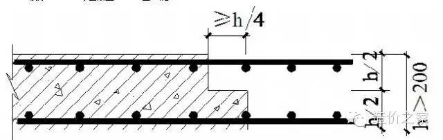 (2)板厚200mm时应按图10.1.a留阶梯缝。