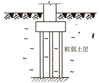 高承台桩基:桩身露出地面而承台底面位于地面以上,常用于海洋和港湾等水域工程结构中;