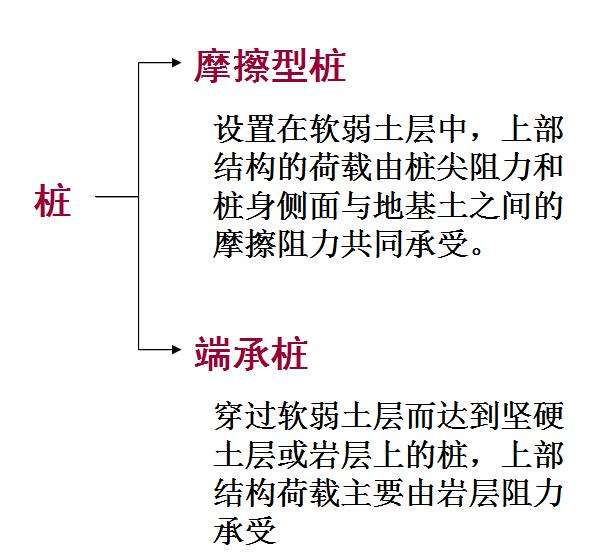 桩基础是由承台和埋置于土中的单桩或桩群组成,通过桩杆将荷载传给深部的土层或侧向土体;是将建筑物的荷载全部或部分传给地基土或岩层的具有一定刚度和抗弯能力的构件。