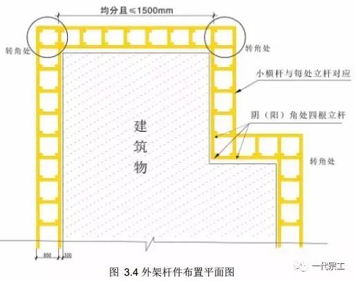 2)内外立杆的连线应垂直于建筑物结构边线, 紧贴每一组立杆必须设置小横杆。