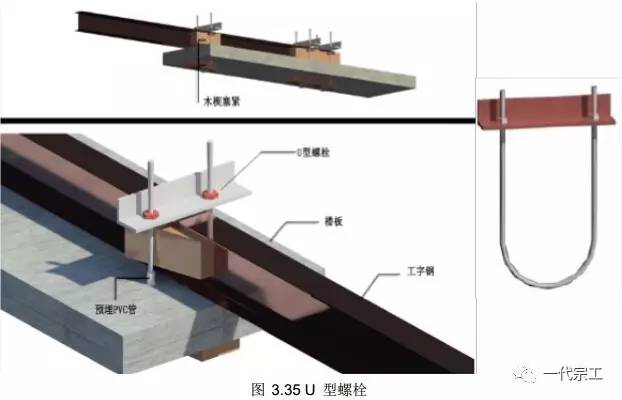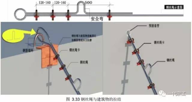 1)楼层预埋中 20U 型螺杆,每道钢梁设置中 16 钢丝绳作为保险绳。