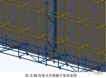 附着升降脚手架主要由附着升降脚手架架体结构、附着支座、防倾装置、防坠落装置、升降机构及控制装置等构成。