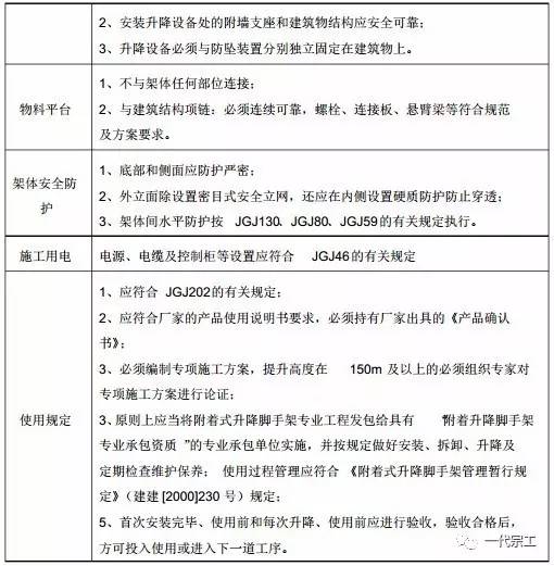 附着式升降脚手架使用,必须符合如下安全要求: