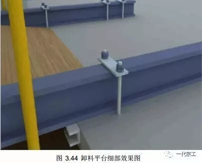 3)卸料平台底部应用花纹钢板焊接固定,与外架之间的间隙也应封闭好。