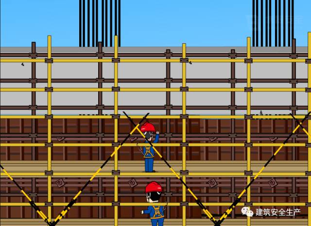 3)进行支模、粉刷、砌墙等上下立体交叉作业时,不得在同一垂直方向上操作。下层作业的位置,必须处于依上层高度确定的可能坠落范围半径之外。不符合以上条件时,应设置安全防护层;
