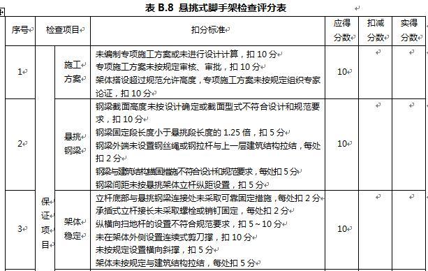 (3)、悬挑式脚手架保证项目的检查评定应符合下列规定: