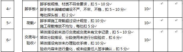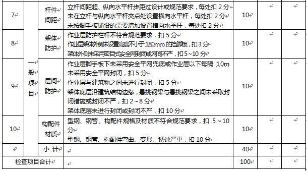 (4)、悬挑式脚手架一般项目的检查评定应符合下列规定: