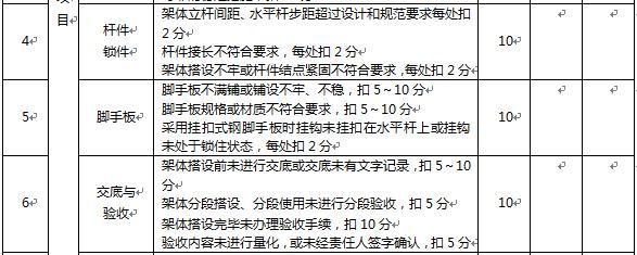 (4)、 满堂脚手架一般项目的检查评定应符合下列规定: