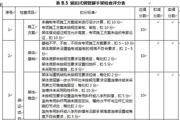 (3)、碗扣式钢管脚手架保证项目检查评定应符合下列规定: