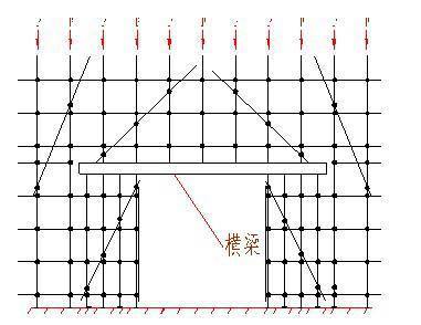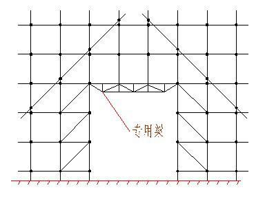 双排脚手架人行通道设置时,应在通道上部架设专用梁,通道两侧脚手架应加设斜杆。