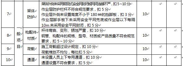 (4)、 碗扣式钢管脚手架一般项目检查评定应符合下列规定: