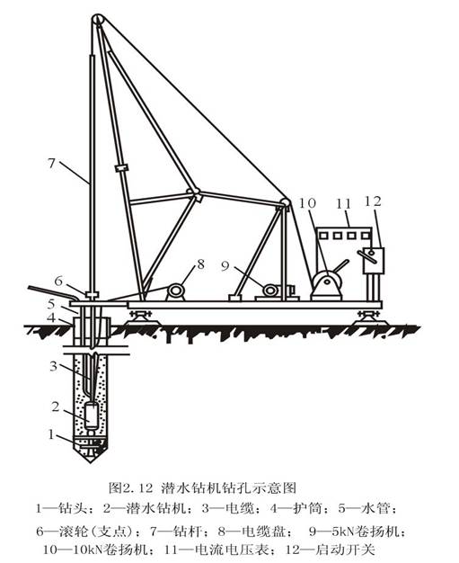 2.成孔机械有潜水钻机、冲击钻机、冲抓锥等。