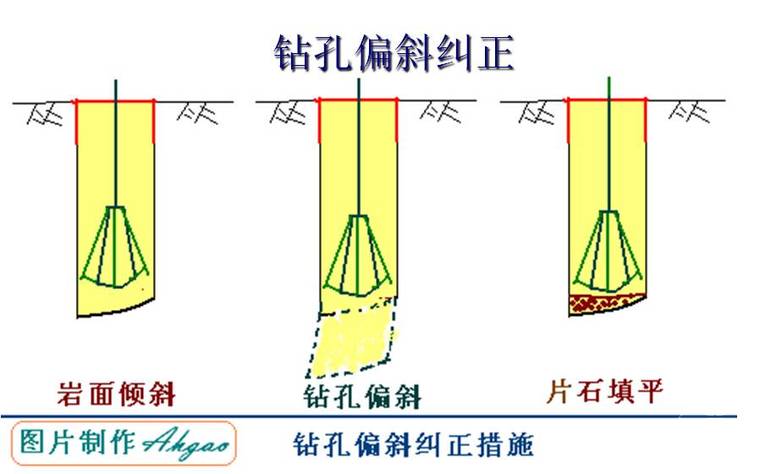 3、钻机就位后,钻杆垂直对准桩位中心,开钻时先慢后快,减少钻杆的摇晃,及时纠正钻孔的偏斜或位移。