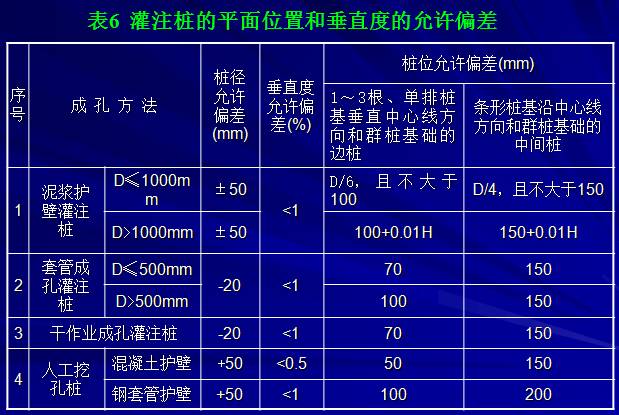 (1)桩的桩位偏差必须符合规定,桩顶标高至少要比设计标高高出0.5m。