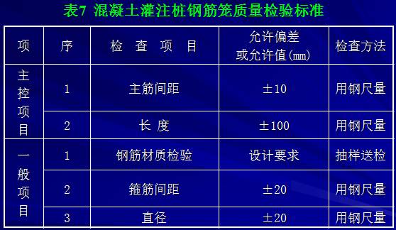 (5) 混凝土灌注桩的质量检验标准应符合表的规定。