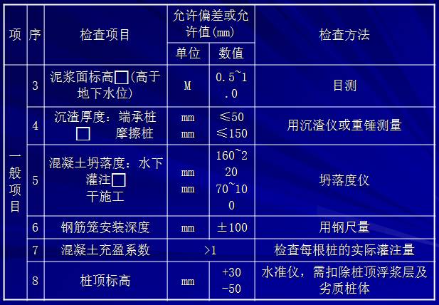 4.清孔后,检查孔口、孔中和孔底提取的泥浆比重的平均值,应符合质量标准要求。