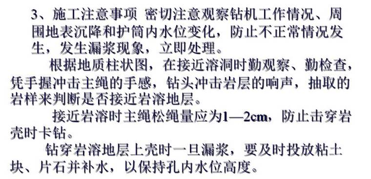 ③适用于松软土层(砂土、粘土)中冲孔,但遇到坚硬土层时宜换用冲击钻施工。