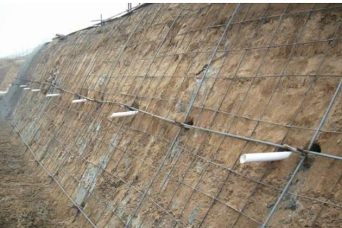 (1)第一步为挖土、修坡。挖土应注意土方的放坡系数,一般挂网喷的放坡系数为大于0.75;修坡主要目的将坡面整理平整,并且按照设计修正放坡系数。