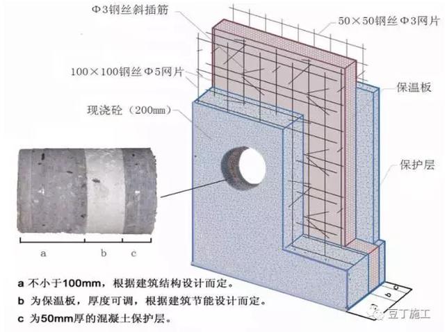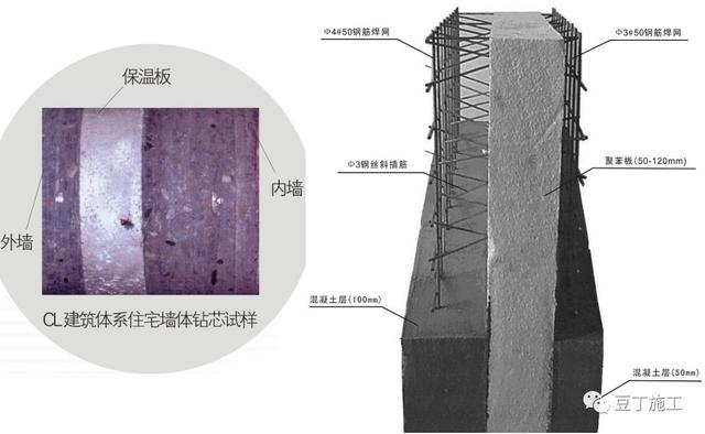 或者可以说:CL保温体系是在工厂将保温层与剪力墙的受力钢筋焊接成一体形成的CL网架板,在施工现场两侧浇筑或喷射混凝土后形成受力和保温隔音的墙体。