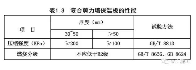 (4)检查保温板的性能,复合剪力墙的保温板性能应符合表1.3的规定;采用挤塑聚苯乙烯泡沫塑料(以下简称XPS)板及模塑聚苯乙烯泡沫塑料(以下简称EPS)板时尚应符合相关的规定;