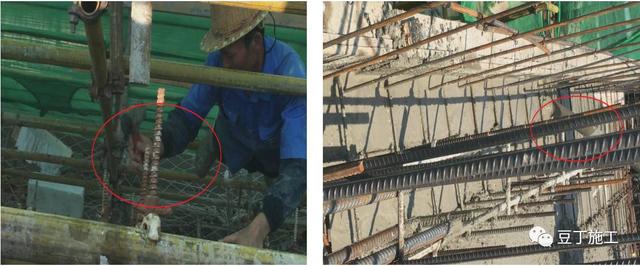 (4)对于双层空调板等楼层中部的外挑构件,应在模板施工过程中将钢筋弯曲至模板内,待模板拆除后,将此部位钢筋恢复,并重新支设模板,后期进行二次浇注。