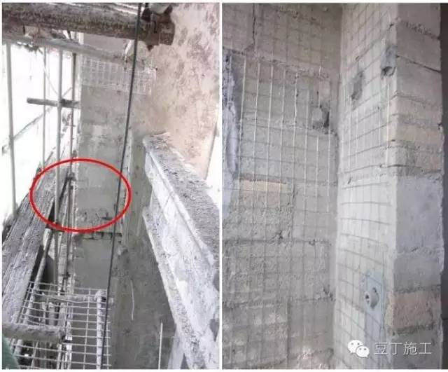 图3 墙体顶部处理不正确图4 砌体与结构交接处挂网