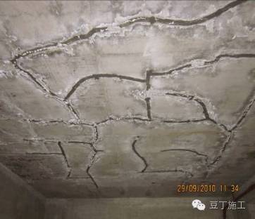 (1)多层房屋施工时,上层模板的立柱支在下层新浇筑的钢筋混凝土楼板上,造成楼板变形和裂缝。裂缝的宽度在楼板的底宽、上窄;裂缝是跨中多、四边少;