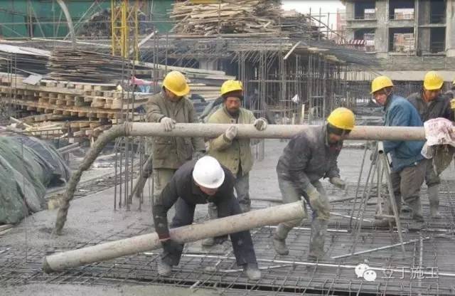 5) 泵送中途若停歇时间超过20min、管道又较长时,应每隔5 min开泵一次,泵送小量混凝土,管道较短时,可采用每隔5 min正反转2-3个行程,使管内混凝土蠕动,防止泌水离析,长时间停泵(超过45 min)气温高)混凝土坍落度小时可能造成塞管,宜将混凝土从泵和输送管中清除。