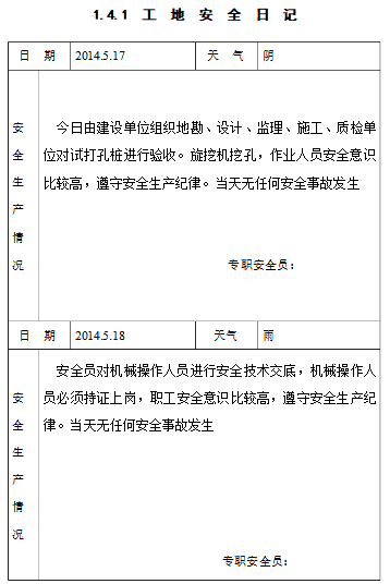 四、施工安全日记的填写要求及注意细节