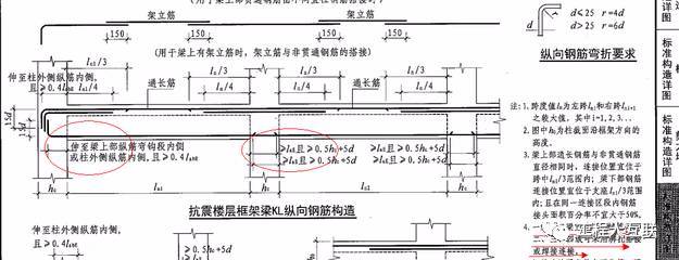 三、梁上部钢筋表示方法:(标在梁上支座处)