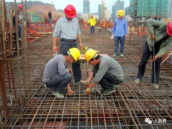13、施工单位管理人员及工人在施工现场必须戴安全帽,安全帽的颜色应便于区分;高空作业,必须系安全带,做到高挂低用及牢固,设置必要的警戒;安全平网必须隔层铺设并及时清理,严防高空坠物。所有人员特别是操作工人不得从柱子箍筋上下,钢筋骨架无论其固定与否,不得在上行走,特别是板筋,必须要安全第一。