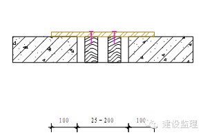2)位于结构楼板上的架体基础垫15015018mm的木胶合板。