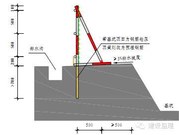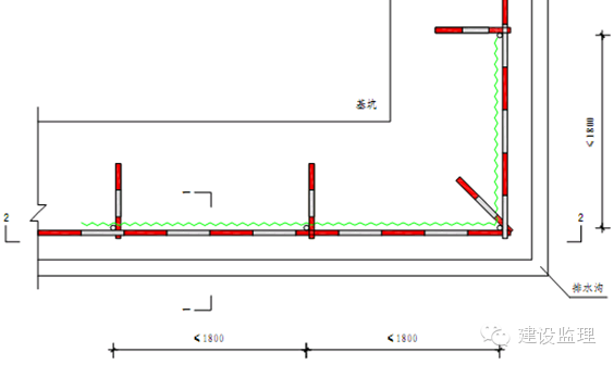 ③排水沟设置在基坑外侧,基坑顶面应有向排水沟方向3%的坡度。