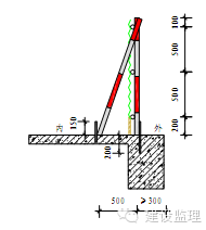 1)外加剪刀撑应涂刷红白相间的警示油漆(每段长度400mm)。