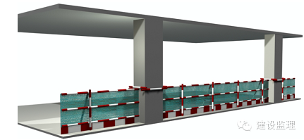 ②临边采用Ф48钢管搭设防护栏杆,设置水平杆三道,立杆间距不大于1.8m,防护栏杆下部设置200mm高18mm厚木胶合板做挡脚板。