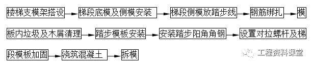 3.1 楼梯梯段底模应在梯段底部留置两个150mm150mm的清扫口,待钢筋绑扎完成、踏步模板封模后,用清水将模板内的木屑、渣滓等从清扫口清走,浇筑混凝土前再用模板将清扫口封堵。