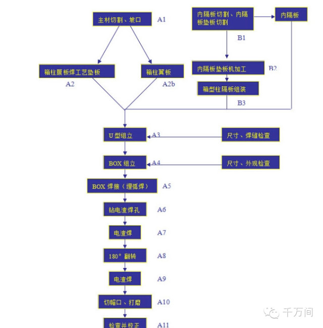 1.对于箱型钢梁,为防止变形采用卧式焊接并选择合理的焊接工艺,采用同时、对称的施焊顺序进行焊接。