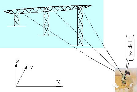 采用自动准直精密电动经纬仪和自动跟踪精密全站仪为传感器,利用数据通讯设备将两台仪器的观测数据传送给与之相连的计算机,并根据相应的软件对观测数据进行处理,实时获得肋梁标志点位的空间位置和肋梁的几何形状。