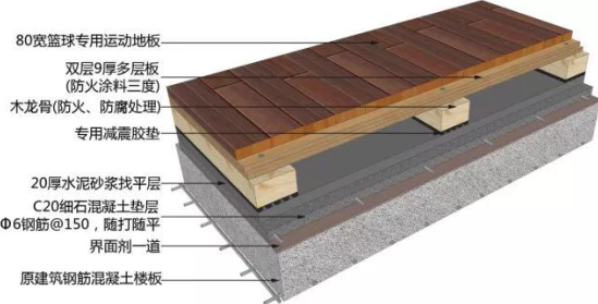 2、粘结用胶需选用运动用木地板专用胶粘剂
